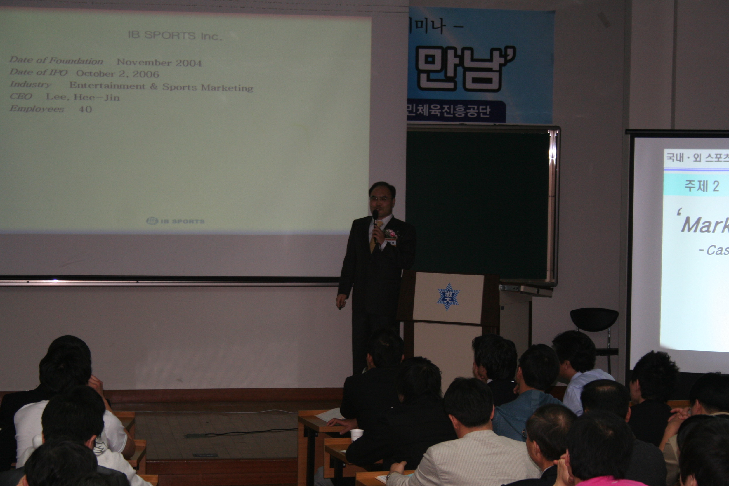 IB SPORTS 장달영변호사님의 발표모습('Marketing a chmpion')